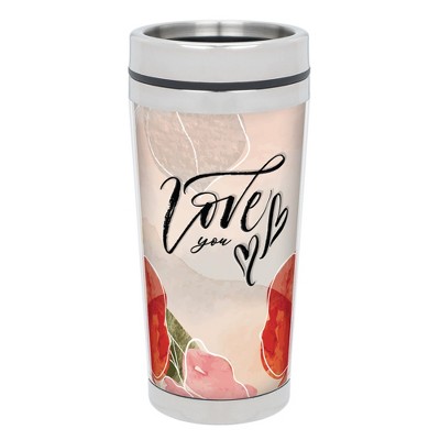 Cottage Garden ESSMUG-29 Love Us Red and Orange Floral 16 Ounce Stainless Steel and Acrylic Travel Tumbler