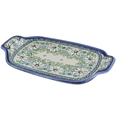 Blue Rose Polish Pottery P14 Galia Rectangular Tray with Handles