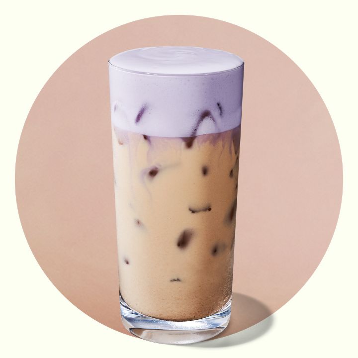 Full-bodied espresso layered over creamy milk & toasted coconut syrup, served over ice. Topped with an ube coconut foam & sprinkled with coconut flakes.
