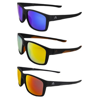 3 Pairs of Alpha Omega AO4 Sunglasses with Blue Mirror, Orange Mirror, Brown Mirror Lenses