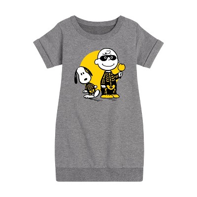 Girls' - Peanuts - Charlie And Snoopy Skeleton Graphic Short Sleeve Fleece Dress