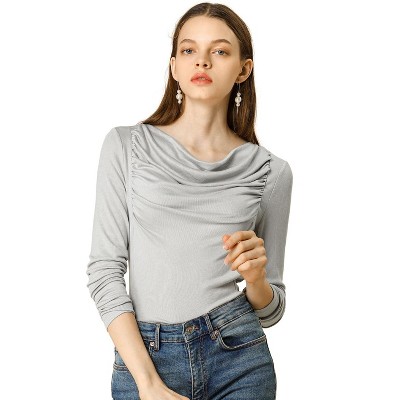 Allegra K Women's Cowl Neck Long Sleeves Buttons Decor Solid Ruched Top