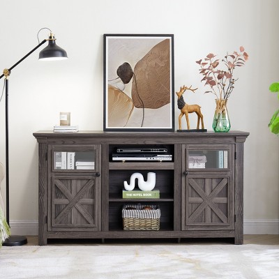 Jojoka Sturdy Wooden Entertainment Center with 2 Closed & 2 Open Shelves