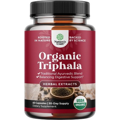Organic Triphala Capsules Complex, Ayurvedic Blend for Colon Cleanse & Digestive Health Detox, Bloating & Constipation Relief, Nature's Craft, 60ct