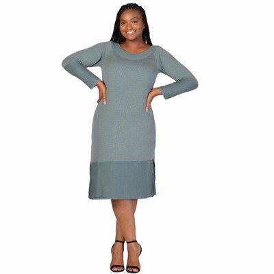 24seven Comfort Apparel Plus Size Ribbed Knit Long Sleeve Split Hem Sweater Dress