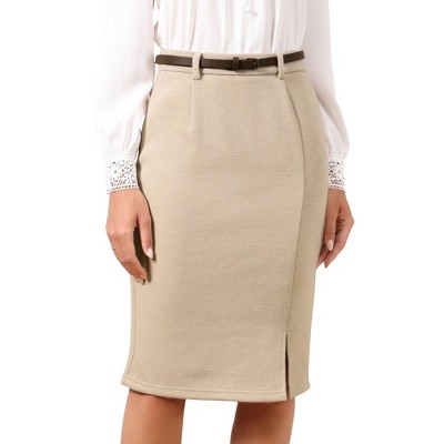 INSPIRE CHIC Women's Summer High Waisted Belted Elegant Office Work Bodycon Midi Skirts