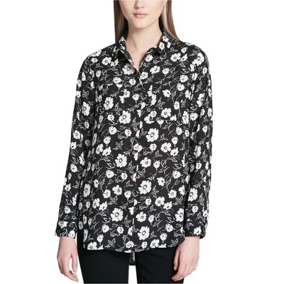 Calvin Klein Womens Pleat-Neck Pullover Blouse