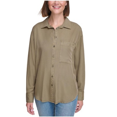 Calvin Klein Womens Solid Boyfriend Button Up Shirt