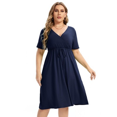 Women's Plus Size Dress Knee Length Wrap Min DressWomenyellow-cs X-Large
