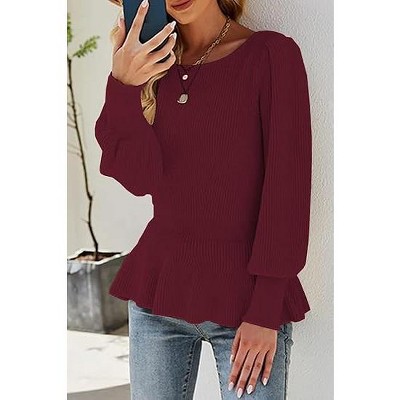 Women's Waist - Cinched Lantern Sleeve Pullover Sweater - Stylish, Comfortable, and Versatile for Fall and Winter