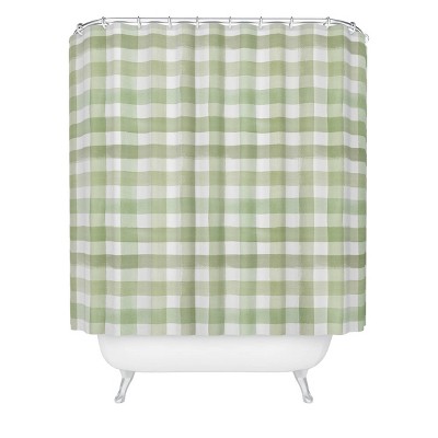 Deny Designs Ninola Design Watercolor Gingham Salad Green Shower Curtain
