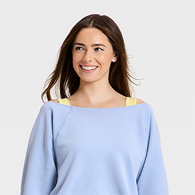 Women's Cozy Wide Crewneck Love Pullover Sweater - Universal Thread™ Navy Blue XS
