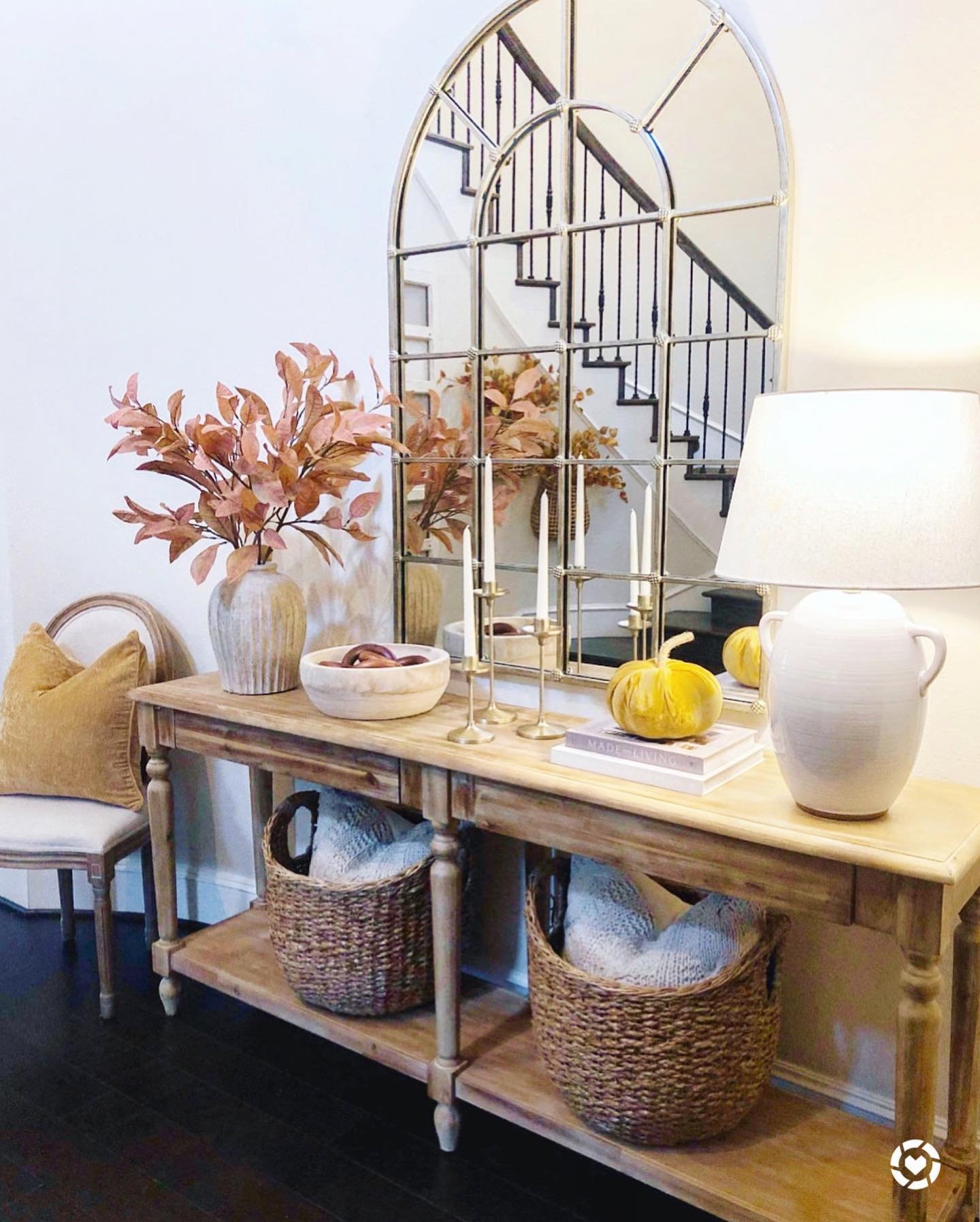 @woodlandsstylehouse 🍁It’s #Thanksgiving Eve! And this perfectly styled #entryway by our own harknesshomestylist is getting us SO excited for tomorrow. Happy Thanksgiving y’all! 🍁 #WoodlandsStyleHouse