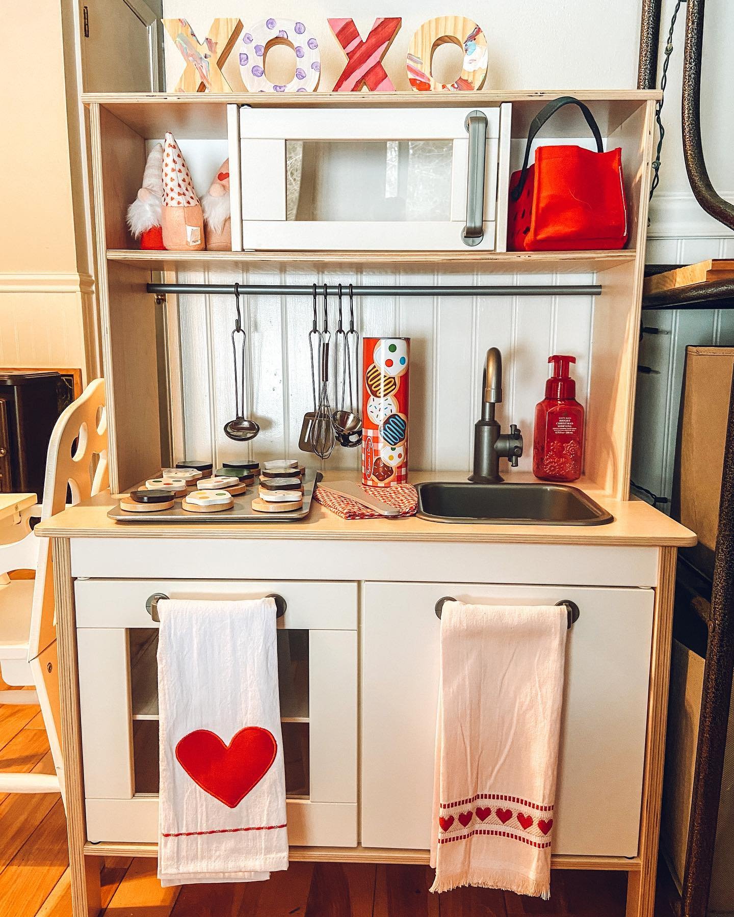@emma__laughlin I have absolutely loved watching Maddie play with her kitchen set she got for Christmas from ikeausa. I also love the fact that it’s another space I can decorate for holidays! 😆 (just now noticed that she turned around one of the gnomes in the last picture 😂 #toddlerlife) . The melissaanddougtoys cookie baking set has also been a popular toy lately! I love incorporating vocabulary into her play, and this one is perfect for “hot, sweet, oven, bake, cookie sheet, frosting, etc.” I have loved hearing her say those words while playing. There is so much value in play, and in dramatic play specifically.