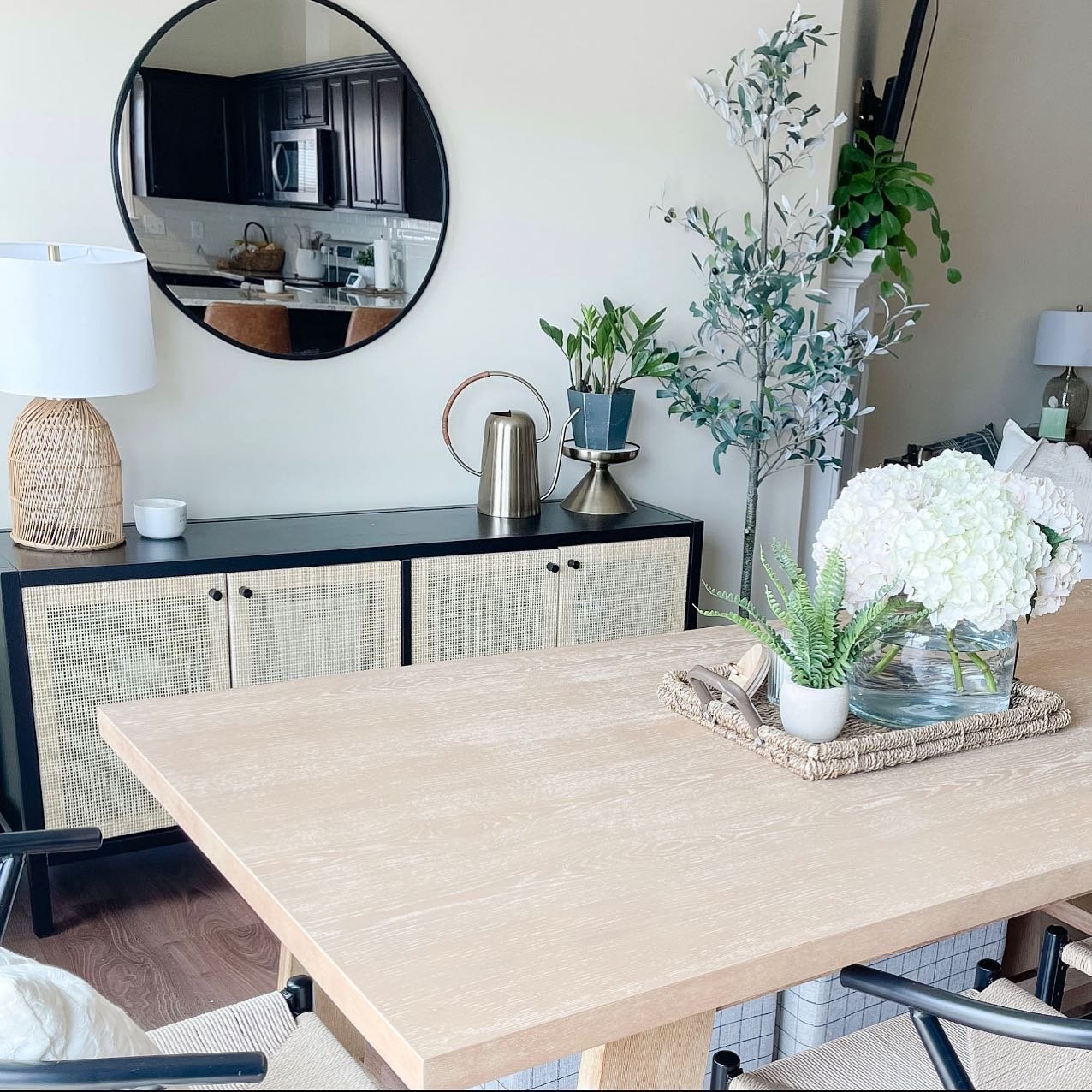 @ourcomfycozycorner Happy Monday 🥰 I have slowly started making progress on our dining area. I still have a million goals to reach with it but felt like I should document the process. Sometimes life doesn’t allow us to set everything up exactly how we want it the perfect way at one time. This table and sideboard have been calling my name to finish styling it, but I haven’t had the time or energy both at one time to make it happen. I wanted to just share this because there are times and seasons where life is more hectic and we have to do things in small increments. I got the mirror hung this weekend and I’m counting it as a win. Remember your home will not always be Pinterest perfect or Instagram ready. It’s highly unlikely it will ever be, and that’s ok. What we see online is the absolute best version of someone’s home or life in a moment, it’s ok to remember real life takes place everyday and our homes aren’t always a top priority. I hope you all have an amazing week ❤️ #diningroom #diningroomdecor #diningtable #diningtabledecor #diningroominspo #diningdecor #diningchairs #diningroomstyle #currentdesignsituation #howyouhome #homeaccount #neutralhome #passionforinterior #dailydecordose #mypinterest #homesohard #interiordecorating #interiordecorators #neutraldecor #neutraldoneright #neutralhome #homebody #pocketsofmyhome #sharemysquare #myneutralhome #showmeyourstyle #homedecoraddict #sharemytargetstyle #targetdoesitagain