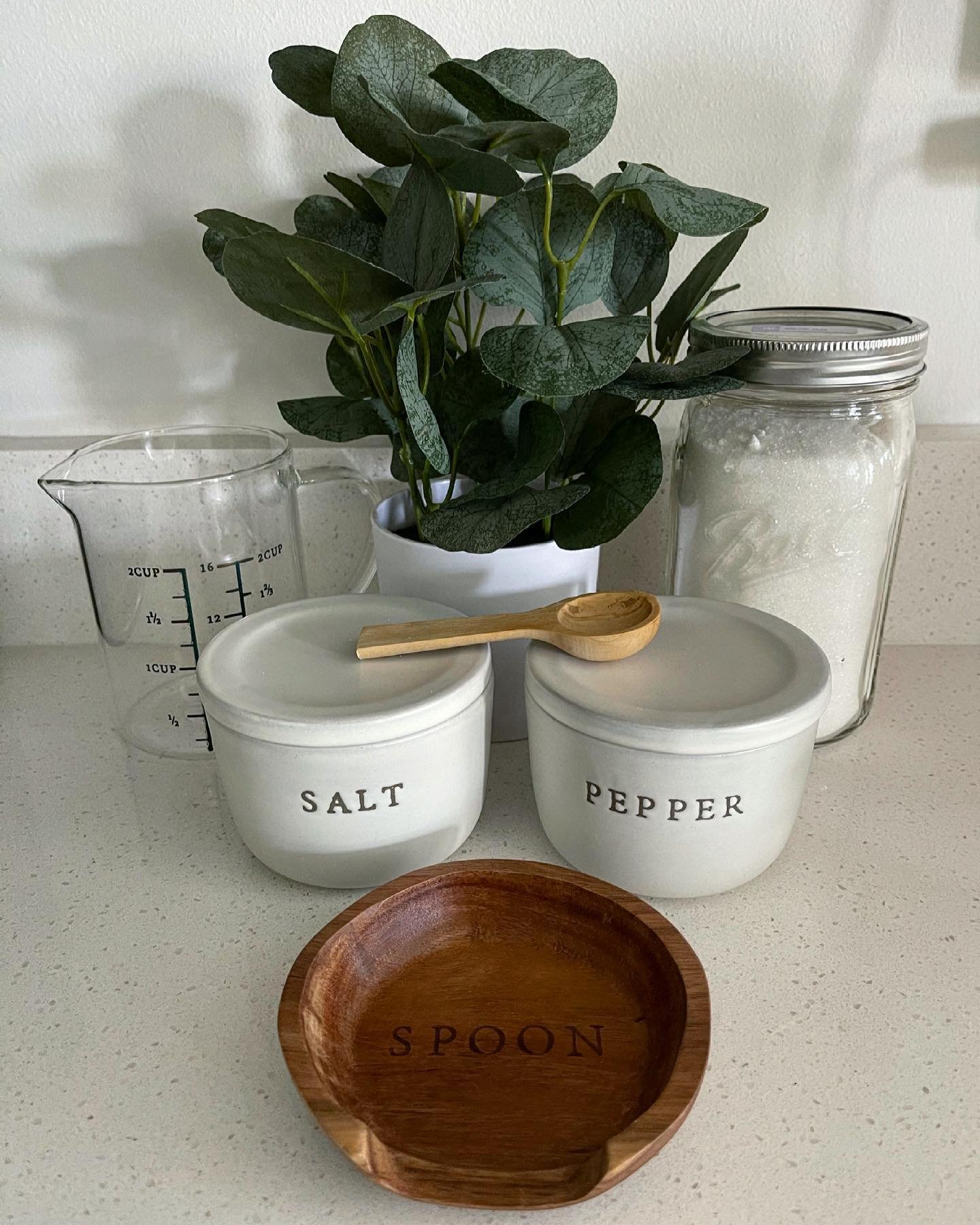 @little.house.on.raintree New finds from Target! Love my new Salt and Pepper jars and Spoon Rest from the hearthandhand_target collection! 💚🤎 . . . ##放衵daily_328love #hearthandhandwithmagnolia #targetstyle #targetfinds #target #cooking #cookingathome #salt #sugar #spoonrest #eucalyptus #measuringcup #kitchendecor #saltandpepper #joannagaines #magnolia #magnoliahomes #farmhousedecor #farmhousekitchen #kitchenaccessories