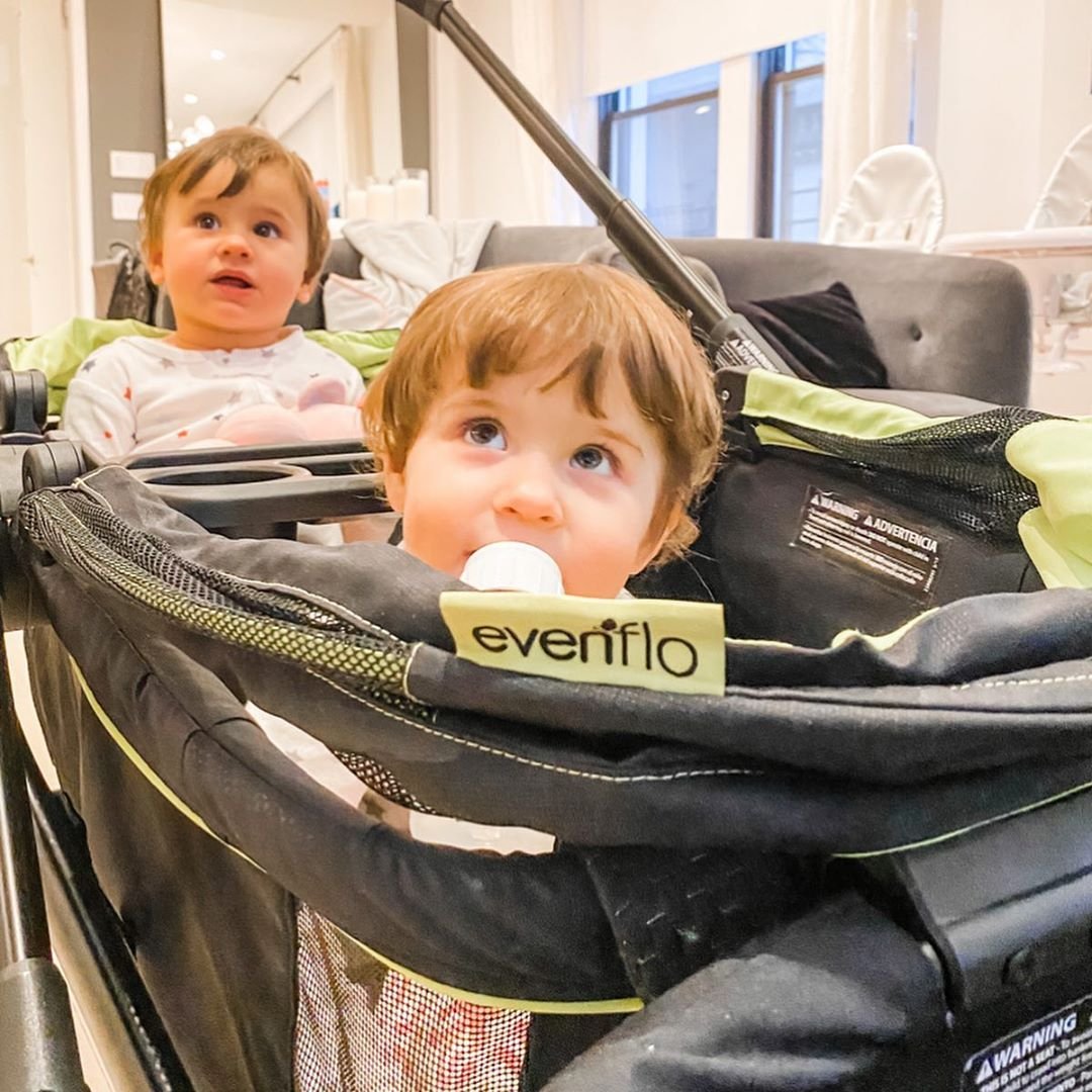 @almosttripletsnyc These two can not get enough of their new ultimate ride share stroller, Evenflo® Pivot Xplore All-Terrain Double Stroller Wagon in Wayfarer Black. Seriously can’t get them out of it! But now I need another to carry Harlow and Dylan! @evenflobaby #nyc 👍 . . . . . . #stroller #evenflopivot #evenflo #twins #kids #5kids #familyof7 #children #toddlers #family #momsofinstagram #motherhood #momlife #manhattan
