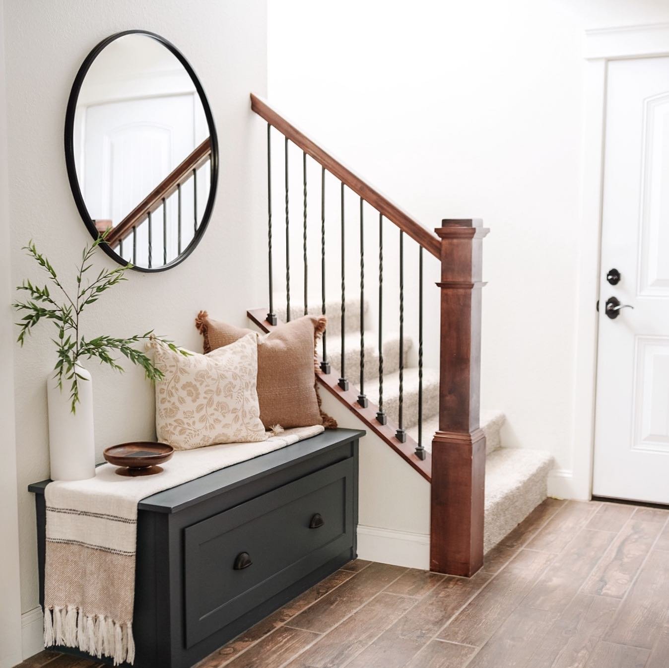 @living_with_meg The Entryway // If you can guess how many pairs of shoes are crammed into this bench, I will send you a coffee ☕️ 😂 . . . . . . #potterybarn #studiomcgeetarget #studiomcgee #target #targetstyle #targetstylehome #entryway #entrywaydecor #entrybench #entrybenchdecor #smallentryway #basemententry #basemententryhome #hobbylobbyfinds