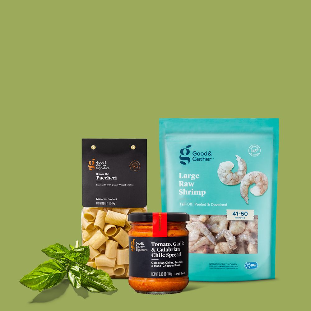 Sauté shrimp, stir in sauce & serve over pasta with fresh basil. Bon appétit!