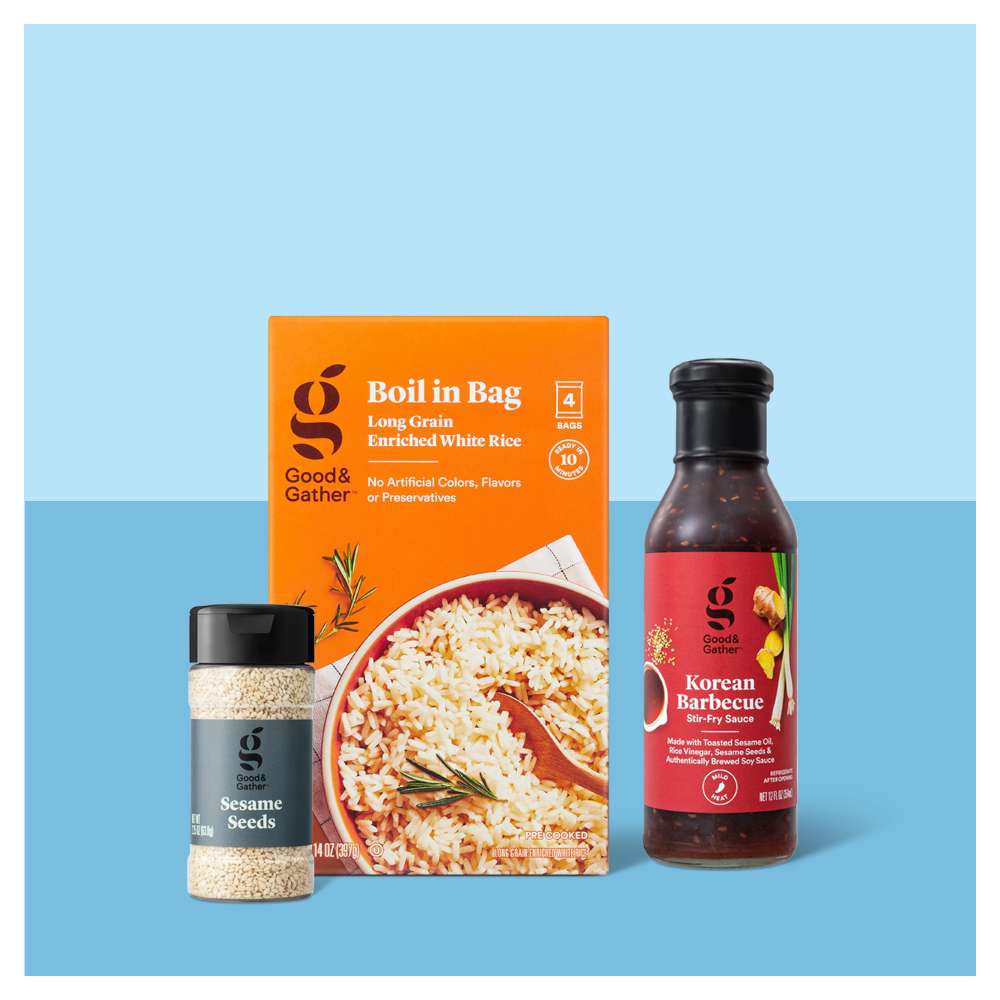 Cook beef thoroughly. Stir in sauce. Serve over cooked rice and top with sliced scallions and sesame seeds.