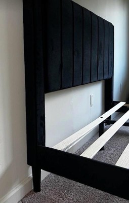 Allewie Queen Velvet Upholstered Bed Frame/Vertical Channel Tufted Wingback Headboard/Heavy Duty Support/box spring Optional/Easy Assembly/Black