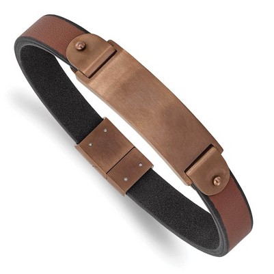 Black Bow Jewelry 10mm Color Plated Stainless Steel & Leather I.D. Bracelet, 8.5 Inch - 1 of 4