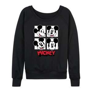 Women's - Disney - Mickey Mouse Grid Lightweight French Terry Wide Neck Long Sleeve Graphic Shirt - 1 of 4