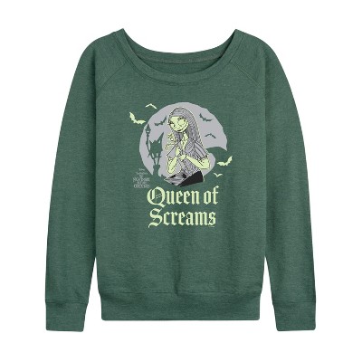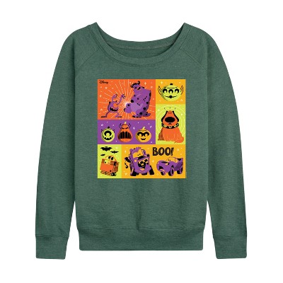 Women's Disney Mickey Halloween Animation Lightweight French Terry Wide Neck Long Sleeve Graphic Shirt - Heather Juniper - Small