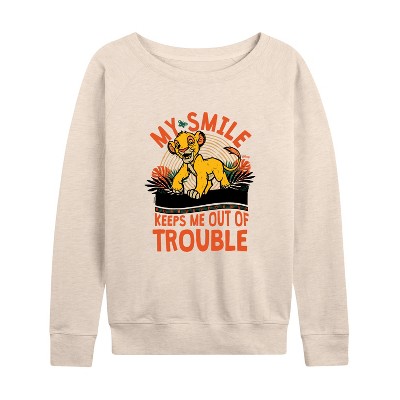 Women's Disney The Lion King Lightweight French Terry Wide Neck Long Sleeve Graphic Shirt - Birch - Large