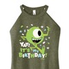 Disney Monsters Inc - Mike Yay It's My Birthday - Juniors High Neck Tank Top - Add a touch of magic to your wardrobe with this graphic apparel featuring iconic Disney designs. Showcasing beloved characters and classic imagery, each piece combines nostalgic charm with modern style—perfect for Disney fans of all ages. Whether you're headed to the parks or just adding whimsy to your everyday look, these graphics bring the magic to life.
