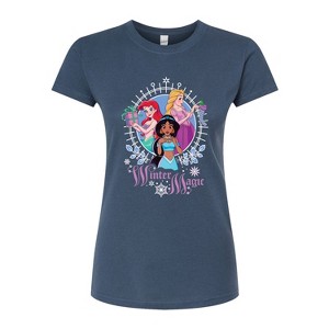 Disney Princesses - Ariel, Rapunzel, & Jasmine - Winter Magic - Juniors Fitted Graphic T-Shirt - Add a touch of magic to your wardrobe with this graphic apparel featuring iconic Disney designs. Showcasing beloved characters and classic imagery, each piece combines nostalgic charm with modern style—perfect for Disney fans of all ages. Whether you're headed to the parks or just adding whimsy to your everyday look, these graphics bring the magic to life.