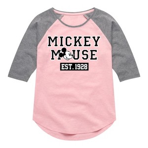 Mickey & Friends - Mickey Mouse Est 1928 - Toddler And Youth Girls Raglan Graphic T-Shirt - Add a touch of magic to your wardrobe with this graphic apparel featuring iconic Disney designs. Showcasing beloved characters and classic imagery, each piece combines nostalgic charm with modern style—perfect for Disney fans of all ages. Whether you're headed to the parks or just adding whimsy to your everyday look, these graphics bring the magic to life.