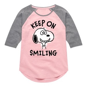 Girls' Peanuts Keep On Smiling Shirt Tail Raglan Graphic T-shirt - Light Pink/Ath Hea - 3T