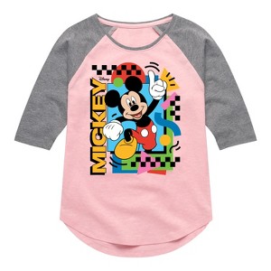 Disney - Mickey 90s Nostalgia - Toddler & Youth Girls Raglan Graphic T-Shirt - Add a touch of magic to your wardrobe with this graphic apparel featuring iconic Disney designs. Showcasing beloved characters and classic imagery, each piece combines nostalgic charm with modern style—perfect for Disney fans of all ages. Whether you're headed to the parks or just adding whimsy to your everyday look, these graphics bring the magic to life.