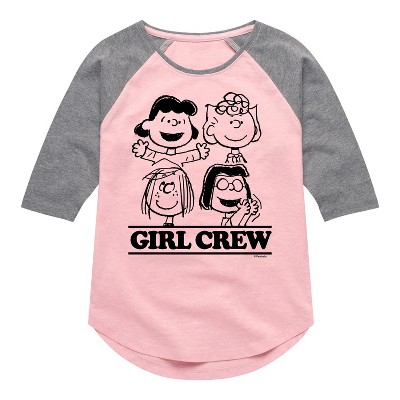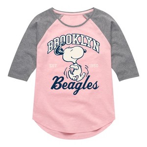 Girls' Peanuts Brooklyn Beagles Shirt Tail Raglan Graphic T-shirt - Light Pink/Ath Hea - Medium