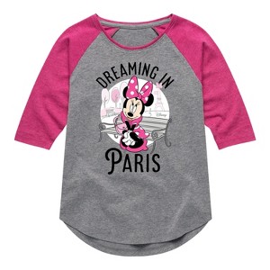 Disney - Mickey & Friends - Minnie Dreaming in Paris - Toddler And Youth Girls Raglan Graphic T-Shirt - Add a touch of magic to your wardrobe with this graphic apparel featuring iconic Disney designs. Showcasing beloved characters and classic imagery, each piece combines nostalgic charm with modern style—perfect for Disney fans of all ages. Whether you're headed to the parks or just adding whimsy to your everyday look, these graphics bring the magic to life.