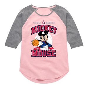 Girls' - Disney - Mickey Basketball Jersey Shirt Tail Raglan Graphic T-shirt - 1 of 2