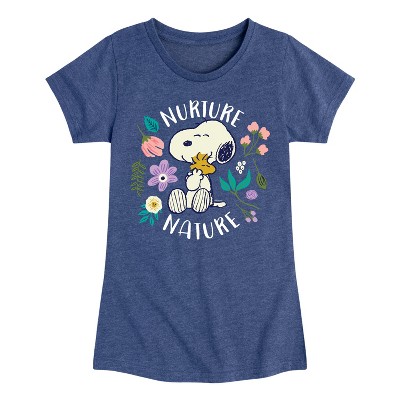 Girls' Peanuts Stay Cozy Fitted Short Sleeve Graphic T-Shirt - Heather Navy - Large