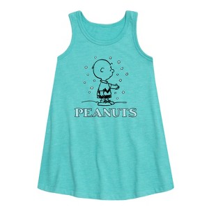 Girls' - Peanuts - Charlie Snow Graphic Sleeveless Aline Dress - 1 of 4
