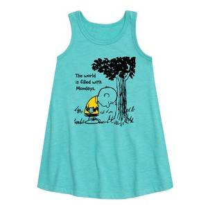 Girls' - Peanuts - World Filled With Mondays Graphic Sleeveless Aline Dress - 1 of 4