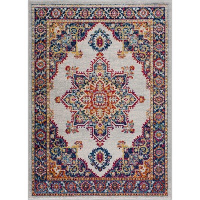 Collection:TigrisColors:Ivory, Light Gray, Yellow, Medium Gray, Pink, Light BlueConstruction:Machine MadeMaterial:100% PolypropylenePile:Medium PilePile Height:0.31"Styles:TraditionalBacking:PolyesterMade In:TurkeyThickness:0.35"