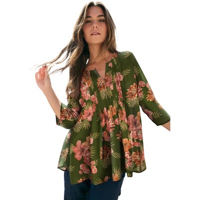 Roaman's Boho Floral Tunic - 30 W, Cool Sage Boho Floral
