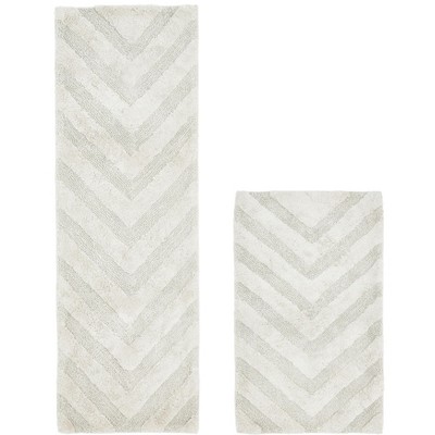 Hotel 2 PC Bath Rug 100% Premium Cotton Tufted Weave Two Tone Reversible Bathroom Rug, Super Soft Absorbent, Machine Washable Bath Mat - 1 of 2