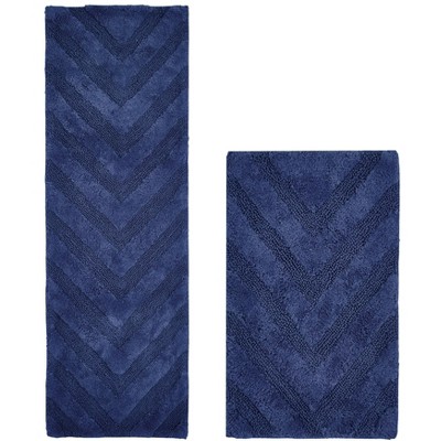 Better Trends Edge 100% Cotton Tufted Reversible Bath Rug Set 2 PC (24" x 40" | 20" x 60") - Blue