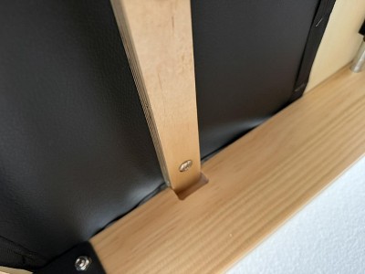 Item is defective. The wooden bar under the seat part doesn’t even fit in the whole it is supposed to go into. I’ve inserted a photo showing this