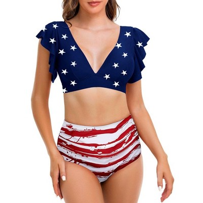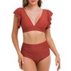 Women's V Neck Bikini Set Two Piece Ruffled Top Bathing Suits High Waisted Bikini Bottom U Back Swimwear - 2 of 4Women's V Neck Bikini Set Two Piece Ruffled Top Bathing Suits High Waisted Bikini Bottom U Back Swimwear - 3 of 4Women's V Neck Bikini Set Two Piece Ruffled Top Bathing Suits High Waisted Bikini Bottom U Back Swimwear - 4 of 4