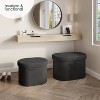 - Our ottoman with storage for bedroom measures 15” D x 18” W x 15” H and folds flat when not in use.