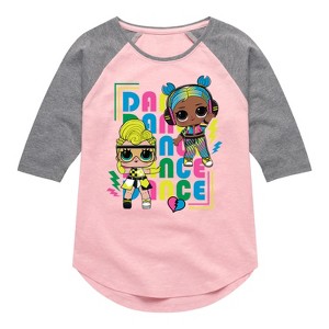 LOL Surprise! Dolls - Dance Queens - Toddler & Youth Girls Raglan Graphic T-Shirt - Dive into the world of glitter, glam, and surprises with our exclusive collection of apparel inspired by the beloved toy phenomenon, LOL Surprise! Dolls. Crafted with quality materials for comfort and durability, our Graphic Garments are perfect for expressing your unique style and spreading joy wherever you go. Whether you're uncovering the latest fashion trends or embracing the magic of surprise, our LOL Surprise! Dolls Graphic Garments are sure to add a touch of sparkle to your wardrobe. Get ready to unleash your inner diva and make a statement with our LOL Surprise!-inspired fashion today!