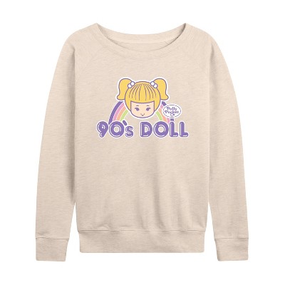 Women's Polly Pocket 90s Doll Lightweight French Terry Wide Neck Long Sleeve Graphic Shirt - Birch - Large