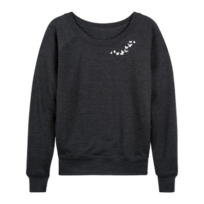 Women's Polly Pocket 90s Doll Lightweight French Terry Wide Neck Long Sleeve Graphic Shirt - Heather Charcoal - Large